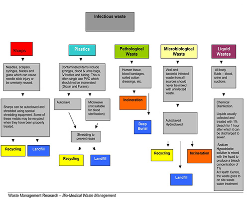 There is a big network of Health Care Institutions in India. The hospital waste like body parts, organs, tissues, blood and body fluids along with soiled linen, cotton, bandage and plaster casts from infected and contaminated areas are very essential to be properly collected, segregated, stored, transported, treated and disposed of in safe manner to prevent nosocomial or hospital acquired infection.